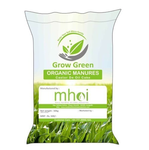 "grow green - make your soil more fertile" - in "grow green" brand of organic manures as castor de oil cake is the prominent organic fertilizer that can be used as an alternative to chemical fertilizer because of high contents of nitrogen, phosphors and potassium.